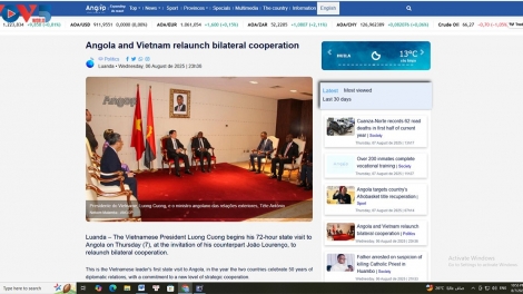 (VOVWORLD) - เมื่อวันที่ 7 สิงหาคม สื่อของแองโกลาได้รายงานข่าวการเยือนแองโกลาอย่างเป็นทางการของประธานประเทศ เลืองเกื่องและภริยา