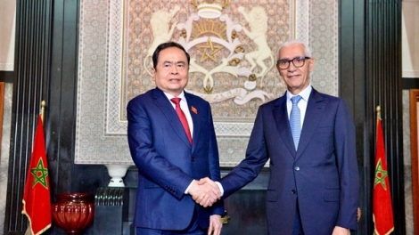 (VOVWORLD) - เช้าวันที่ 25 กรกฎาคมตามเวลาท้องถิ่น ณ กรุงราบัต ประธานสภาล่างโมร็อกโก Rachid Talbi El Alami ได้ให้การต้อนรับประธานสภาแห่งชาติเวียดนามเจิ่นแทงเหมินและคณะผู้แทนระดับสูงเวียดนามที่เดินทางมาเยือนประเทศโมร็อกโกอย่างเป็นทางการ