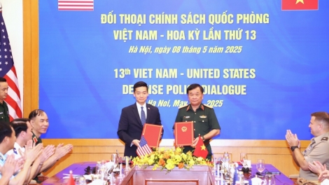 (VOVWORLD) - เช้าวันที่ 8 พฤษภาคม ณ สำนักงานใหญ่ของกระทรวงกลาโหม พลโทอาวุโส หว่างซวนเชี้ยน สมาชิกคณะกรรมการกลางพรรค สมาชิกพรรคสาขากองทัพส่วนกลางและรัฐมนตรีช่วยว่าการกระทรวงกลาโหมเวียดนาม และนาย จอห์น โนห์ รักษาการผู้ช่วยรัฐมนตรีกลาโหมสหรัฐได้เป็นประธานการสนทนานโยบายกลาโหมเวียดนาม-สหรัฐครั้งที่ 13