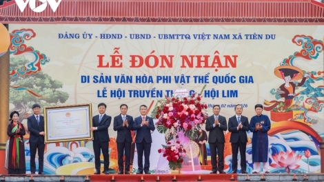 (VOVWORLD) - เช้าวันที่ 28 กุมภาพันธ์ ที่ตำบลเตียนยู จังหวัดบั๊กนิงห์ ได้มีการจัดพิธีประกาศให้เทศกาลลิมเป็นมรดกวัฒนธรรมที่จับต้องไม่ได้ระดับชาติและการจัดพิธีเปิดเทศกาลลิมฤดูใบไม้ผลิปีมะเมีย 2026