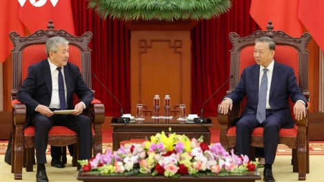 (VOVWORLD) - บ่ายวันที่ 6 มีนาคม ณ สำนักงานใหญ่ของคณะกรรมการกลางพรรค เลขาธิการใหญ่พรรค โตเลิม ได้ให้การต้อนรับนายกรัฐมนตรีสาธารณรัฐคีร์กีซสถาน Adylbek Kasimalyev ที่กำลังอยู่ระหว่างการเยือนเวียดนามอย่างเป็นทางการในระหว่างวันที่ 6 - 7 มีนาคม