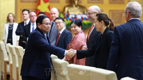 (VOVWORLD) -เช้าวันที่ 1 มีนาคม ณ กรุงฮานอย นายกรัฐมนตรี ฝ่ามมิงชิ้ง ได้เป็นประธานในการเสวนากับบรรดาสถานประกอบการสหรัฐ โดยมีการเข้าร่วมของรองนายกรัฐมนตรีสองท่าน ตัวแทนกระทรวง หน่วยงาน ท้องถิ่นและเครือบริษัทต่างๆของเวียดนาม รวมไปถึงนาง Courtney Beale อุปทูตสหรัฐประจำเวียดนาม ตัวแทนสมาคม เครือบริษัทและบริษัทดีเด่น 38 แห่งของสหรัฐ