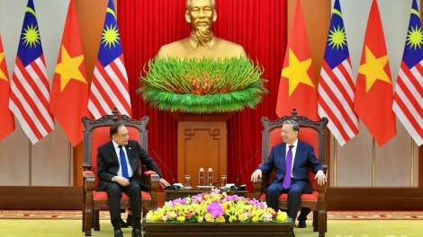 (VOVWORLD) - เมื่อค่ำวันที่ 25 กุมภาพันธ์ ณ กรุงฮานอย เลขาธิการใหญ่พรรค โตเลิม ได้ให้การต้อนรับนายกรัฐมนตรีมาเลเซีย อันวาร์ อิบราฮิม ที่เดินทางมาเข้าร่วมฟอรั่มอนาคตอาเซียนครั้งที่ 2 ณ กรุงฮานอย