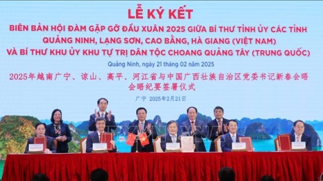 (VOVWORLD) - เช้าวันที่ 21 กุมภาพันธ์ ณ เมืองฮาลอง จังหวัดกว๋างนิง ได้มีการจัดการพบปะสังสรรค์วสันต์ฤดูปี 2025 ระหว่างเลขาธิการพรรคสาขาจังหวัดกว๋างนิง หล่างเซิน กาวบั่งและห่ายางของเวียดนามกับเขตปกครองตนเองกว่างซีจ้วง ประเทศจีน