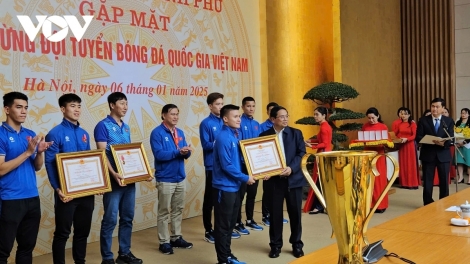 (VOVWORLD) - บ่ายวันที่ 6 มกราคม ณ ทำเนียบรัฐบาล นายกรัฐมนตรี ฝ่ามมิงชิ้ง ได้มอบหนังสือชมเชยให้แก่นักเตะ 29 คนที่ได้ทำผลงานได้อย่างยอดเยี่ยมในการคว้าแชมป์ ASEAN Cup 2024
