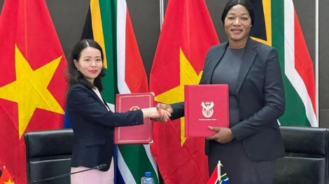 (VOVWORLD) - เมื่อวันที่ 27 พฤศจิกายน ณ กรุงพริทอเรีย ประเทศแอฟริกาใต้ ได้มีการจัดการประชุมครั้งที่ 6 ฟอรั่มหุ้นส่วนระหว่างรัฐบาลเวียดนามกับแอฟริกาใต้ภายใต้อำนวยการของนาง เหงวียนมิงหั่ง รัฐมนตรีช่วยว่าการกระทรวงการต่างประเทศเวียดนามและนาง Anna Thandi รัฐมนตรีช่วยว่าการกระทรวงความสัมพันธ์และความร่วมมือระหว่างประเทศแอฟริกาใต้ ซึ่งเป็นกิจกรรมหลักในกรอบการเยือนแอฟริกาใต้ของรัฐมนตรีช่วย เหงวียนมิงหั่ง ในระหว่างวันที่ 25 -27 พฤศจิกายน