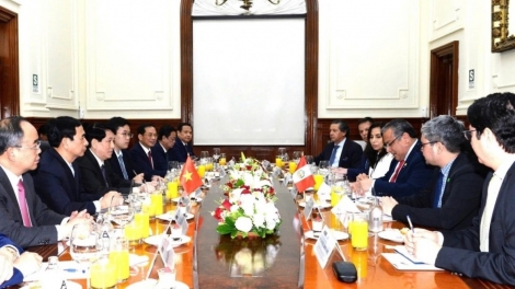 (VOVWORLD) -บ่ายวันที่ 13 พฤศจิกายน ตามเวลาท้องถิ่น ประธานประเทศ เลืองเกื่อง ได้พบปะกับนาย Gustavo Adriazén ประธานคณะรัฐมนตรีเปรูและประธานรัฐสภาเปรู Eduardo Salhuana