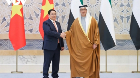 (VOVWORLD) -ในกรอบการเยือนสหรัฐอาหรับเอมิเรตส์อย่างเป็นทางการ วันที่ 28 ตุลาคม หลังพิธีต้อนรับ ณ ทำเนียบประธานาธิบดี นายกรัฐมนตรี ฝ่ามมิงชิ้ง และประธานาธิบดีสหรัฐอาหรับเอมิเรตส์ Sheikh Mohammed bin Zayed Al Nahyan ได้เจรจากัน โดยผู้นำทั้งสองท่านได้เห็นพ้องยกระดับความสัมพันธ์ทวิภาคีขึ้นเป็นหุ้นส่วนในทุกด้าน