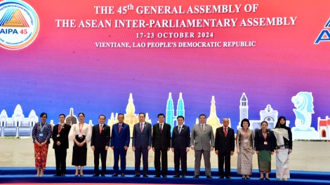 (VOVWORLD) - การประชุมสมัชชาใหญ่รัฐสภาประเทศในเอเชียตะวันออกเฉียงใต้หรือ AIPA ครั้งที่ 45 ได้เปิดขึ้นเมื่อเช้าวันที่ 19 ตุลาคม ณ กรุงเวียงจันทน์ ประเทศลาว โดยมีคณะผู้แทนสมาชิกรัฐสภา ผู้สังเกตการณ์และหุ้นส่วนพัฒนาของ AIPA เข้าร่วม นาย เจิ่นแทงเหมิน ประธานสภาแห่งชาติได้นำคณะผู้แทนระดับสูงของสภาแห่งชาติเวียดนามเข้าร่วมพิธีเปิดการประชุม