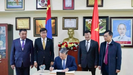เลขาธิการใหญ่พรรค ประธานประเทศ โตเลิม เยือนโรงเรียนโฮจิมินห์ในประเทศมองโกเลีย