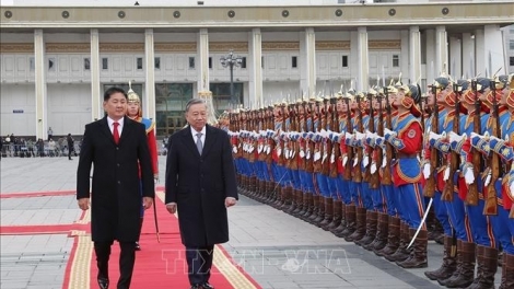 (VOVWORLD) - เวลา 14.00 น.ของวันที่ 30 กันยายน ตามเวลาท้องถิ่น ณ กรุงอูลานบาตาร์ ประเทศมองโกเลีย นาย อุคนากิน คือเรลซึค ประธานาธิบดีมองโกเลีย ได้เป็นประธานในพิธีต้อนรับเลขาธิการใหญ่พรรค ประธานประเทศ โตเลิม อย่างเป็นทางการ