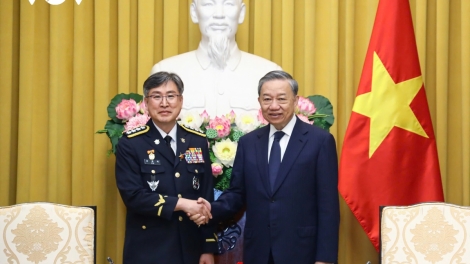เลขาธิการใหญ่พรรค ประธานประเทศ โตเลิม ให้การต้อนรับผู้บัญชาการหน่วยยามฝั่งทะเลสาธารณรัฐเกาหลี