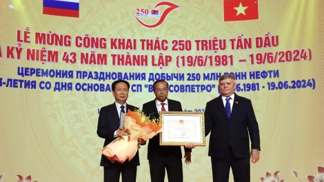 (VOVWORLD) -เมื่อวันที่ 21 มิถุนายน บริษัทร่วมทุนเวียดนาม-รัสเซียหรือ Vietsovpetro ได้จัดพิธีรำลึกการขุดเจาะน้ำมัน 250 ล้านตันและรำลึกครบรอบ 43 ปีการก่อตั้งบริษัทฯ ซึ่งตรงกับวันที่ 19 มิถุนายน