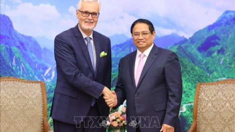 นายกรัฐมนตรี ฝ่ามมิงชิ้ง ให้การต้อนรับเอกอัครราชทูตเยอรมนีประจำเวียดนามที่เข้าอำลาในโอกาสเสร็จสิ้นหน้าที่ในเวียดนาม