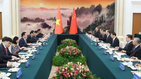 (VOVWORLD) - ในกรอบการเยือนสาธารณรัฐประชาชนจีนอย่างเป็นทางการ เมื่อบ่ายวันที่ 8 เมษายน ณ มหาศาลาประชาชนในกรุงปักกิ่ง ประเทศจีน นาย จ้าวเล่อจี้ สมาชิกกรมการเมืองพรรคและประธานสภาประชาชนแห่งชาติสาธารณรัฐประชาชนจีนได้เป็นประธานในพิธีต้อนรับและเจรจากับนาย เวืองดิ่งเหวะ ประธานสภาแห่งชาติเวียดนาม