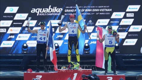 (VOVWORLD) - ภายหลังดำเนินงานมาเป็นเวลา 3 วัน เมื่อวันที่ 24 มีนาคม ณ เมืองกวีเยิน จังหวัดบิ่งดิ่ง ได้มีการปิดการแข่งขัน UIM-ABP Aquabike World Championship โดยมีนักกีฬา 55 คนจากประเทศต่างๆทั่วโลกเข้าร่วม