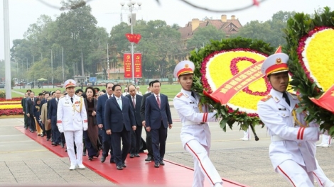 ผู้นำพรรคและรัฐเข้าเคารพศพประธานโฮจิมินห์ในโอกาสฉลองตรุษเต๊ตปีมะโรง 2024