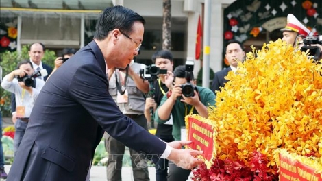 (VOVWORLD) - เช้าวันที่ 2 กุมภาพันธ์ ประธานประเทศ หวอวันเถืองและตัวแทนชาวเวียดนามโพ้นทะเลดีเด่น 100 คนที่เข้าร่วมรายการวสันต์ฤดูในบ้านเกิดได้ไปจุดธูปเพื่อรำลึกถึงประธานโฮจิมินห์ที่ท่าเรือหย่าโหร่งและพิพิธภัณฑ์โฮจิมินห์สาขานครโฮจิมินห์
