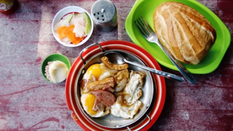 (VOVworld) - ถึงแม้กรุงฮานอยจะพัฒนาและชีวิตจะมีความเร่งรีบเป็นยังไง แต่คนฮานอยก็ยังคงความเคยชินกับการทานอาหารมื้อเช้าตามร้านต่างๆ ด้วยเมนูที่หลากหลายเช่น ขนมจีนราดหน้าด้วยเนื้อหมู เฝอหรือก๋วยเตี๋ยว ข้าวเหนียวถั่ว ข้าวต้มซี่โครงหมู แบ๊งหมี่ หรือ ขนมปัง เป็นต้น