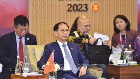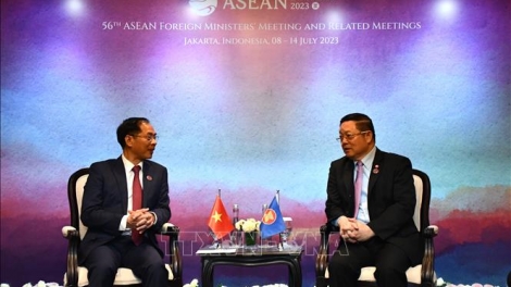 (VOVWORLD) - ในการประชุมรัฐมนตรีว่าการกระทรวงการต่างประเทศอาเซียน หรือ AMM ครั้งที่ 56 ณ กรุงจาการ์ตา ประเทศอินโดนีเซีย เมื่อบ่ายวันที่ 11 กรกฎาคม บรรดาผู้แทนได้หารือเกี่ยวกับกระบวนการสร้างสรรค์ประชาคมอาเซียน การปฏิบัติวิสัยทัศน์อาเซียนเกี่ยวกับอินโด-แปซิฟิก ความสัมพันธ์ด้านการต่างประเทศและโครงสร้างในภูมิภาค