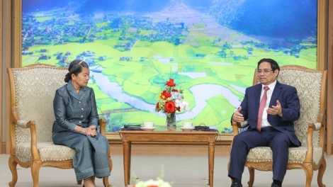 (VOVWORLD) - ในการให้การต้อนรับสมเด็จ Kittisangahapundit Men Sam An รองนายกรัฐมนตรี รัฐมนตรีว่าการกระทรวงความสัมพันธ์ระหว่างรัฐสภา วุฒิสภาและหน่วยงานตรวจตรากัมพูชา เมื่อบ่ายวันที่ 26 พฤษภาคม ณ สำนักรัฐบาล นายกรัฐมนตรี ฝ่ามมิงชิ้ง ได้ยืนยันว่า เวียดนามให้ความสำคัญและให้ความสนใจเป็นพิเศษต่อการขยายความสัมพันธ์ฉันท์เพื่อนบ้านที่ดีงาม สัมพันธไมตรีที่มีมาช้านาน ความร่วมมือในทุกด้านอย่างยั่งยืนกับกัมพูชา