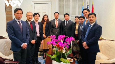 (VOVWORLD) -เอกอัครราชทูต ดั๋งหว่างยาง หัวหน้าคณะผู้แทนถาวรเวียดนามประจำสหประชาชาติ ณ นครนิวยอร์ค ประเทศสหรัฐ ได้ไปอวยพรคณะผู้แทนประจำสหประชาชาติของประเทศลาวและกัมพูชาเนื่องในโอกาสเทศกาลบุญปีใหม่ของลาวและเทศกาลโชลชนัมทมัยของกัมพูชา