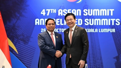 (VOVWORLD) - ในโอกาสเข้าร่วมการประชุมผู้นำอาเซียนครั้งที่ 47 และการประชุมต่างๆที่เกี่ยวข้อง ณ กรุงกัวลาลัมเปอร์ ประเทศมาเลเซีย เมื่อเช้าวันที่ 28 ตุลาคม นายกรัฐมนตรีฝ่ามมิงชิ้งและนาย ลอว์เรนซ์ หว่อง นายกรัฐมนตรีสิงคโปร์ได้ประชุมประจำปีครั้งที่ 2