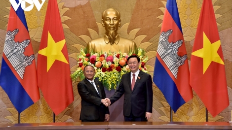 (VOVWORLD) - เมื่อวันที่ 12 กันยายน ณ กรุงฮานอย ประธานสภาแห่งชาติ เวืองดิ่งเหวะและสมเด็จ เฮงสัมริน ประธานรัฐสภากัมพูชาได้เจรจากัน