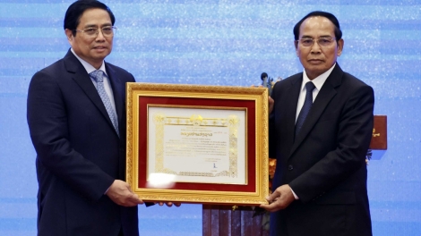 ผู้นำเวียดนามได้รับเหรียญอิสริยาภรณ์ทองคำและเหรียญอิสริยาภรณ์เสรีภาพชั้น 1 ของประเทศสาธารณรัฐประชาธิปไตยประชาชนลาว