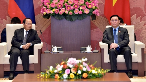 ประธานสภาแห่งชาติเวืองดิ่งเหวะให้การต้อนรับรองประธานประเทศลาว