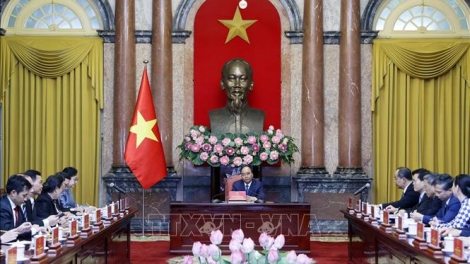 ประธานประเทศเหงวียนซวนฟุกให้การต้อนรับรัฐมนตรีและปลัดสำนักประธานประเทศลาว