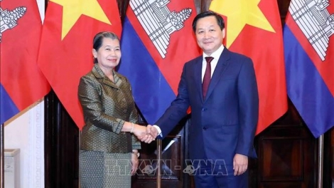 (VOVWORLD) - เมื่อเช้าวันที่ 24 มิถุนายน ณ กรุงฮานอย รองนายกรัฐมนตรี เลมิงขาย ได้ให้การต้อนรับนาง Men Sam An รองนายกรัฐมนตรีและรัฐมนตรีว่าการกระทรวงความสัมพันธ์ระหว่างรัฐสภา วุฒิสภาและหน่วยงานตรวจตรากัมพูชา นายกสมาคมมิตรภาพกัมพูชา-เวียดนาม