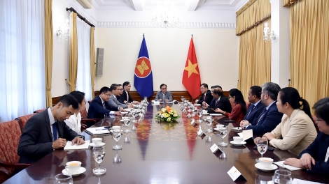 (VOVWORLD) - วันที่ 11 กันยายน ณ สำนักงานของกระทรวงการต่างประเทศในกรุงฮานอย นาย เลหว่ายจุง รักษาการรัฐมนตรีว่าการกระทรวงการต่างประเทศได้ให้การต้อนรับบรรดาเอกอัครราชทูตและอุปทูตของประเทศสมาชิกอาเซียน และติมอร์-เลสเต ณ กรุงฮานอย เข้าเยี่ยมคาราวะและแสดงความยินดีกับนาย เลหว่ายจุง ในโอกาสเข้ารับตำแหน่งรักษาการรัฐมนตรีว่าการกระทรวงการต่างประเทศ