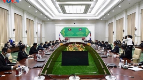 (VOVWORLD) - ตามคำเชิญของสมเด็จ ฮุน เซน นายกรัฐมนตรีกัมพูชา นายกรัฐมนตรีลาว พันคำ วิพาวัน ได้เดินทางไปเยือนกัมพูชาอย่างเป็นทางการเป็นเวลา 2 วันตั้งแต่วันที่ 29 ถึงวันที่ 30 พฤศจิกายนปี 2021