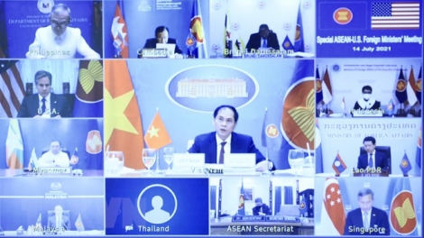 (VOVWORLD) -เช้าวันที่ 14 กรกฎาคม นาย บุ่ยแทงเซิน รัฐมนตรีว่าการกระทรวงการต่างประเทศเวียดนามได้เข้าร่วมการประชุมพิเศษระดับรัฐมนตรีต่างประเทศอาเซียน – สหรัฐผ่านวิดีโอคอนเฟอเรนซ์ภายใต้อำนวยการของรัฐมนตรีต่างประเทศลาวและรัฐมนตรีต่างประเทศสหรัฐ