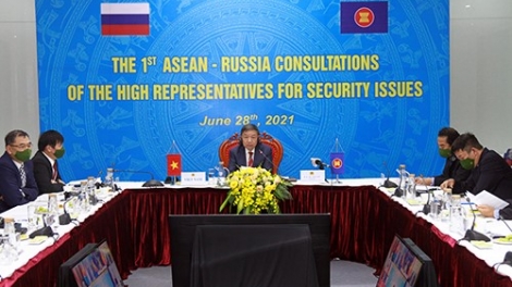 (VOVWORLD) -เมื่อบ่ายวันที่ 28 มิถุนายน คณะผู้แทนระดับสูงเวียดนามนำโดยพลเอกโตเลิม รัฐมนตรีว่าการกระทรวงรักษาความมั่นคงทั่วไปได้เข้าร่วมการประชุมทาบทามความคิดเห็นเจ้าหน้าที่ระดับสูงอาเซียน-รัสเซียครั้งที่1ผ่านระบบทางไกล