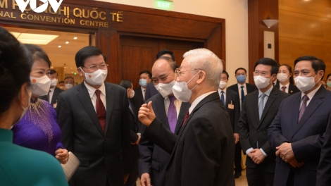 (VOVWORLD) - เมื่อค่ำวันที่ 28 มิถุนายน ท่าน เหงวียนฟู้จ่อง เลขาธิการใหญ่พรรคคอมมิวนิสต์เวียดนามได้จัดงานเลี้ยงเพื่อเป็นเกียรติแด่เลขาธิการใหญ่พรรค ประธานประเทศลาว ทองลุน สีสุลิดและคณะฯ โดยมีประธานประเทศเหงวียนซวนฟุก นายกรัฐมนตรีฝ่ามมิงชิ้งและประธานสภาแห่งชาติเวืองดิ่งเหวะเข้าร่วม