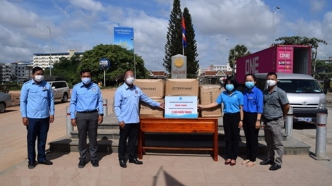 (VOVWORLD) - ในนามของสหพันธ์เยาวชนเวียดนาม คุณเหงวียนถิจุกมาย รองเลขาธิการและประธานสมาคมเยาวชนจังหวัดเตยนิงได้มอบหน้ากากอนามัยแบบผ้า 5 พันชิ้นให้แก่สหพันธ์เยาวชนกัมพูชาเพื่อช่วยเหลืองานด้านการป้องกันและควบคุมการแพร่ระบาดของโรคโควิด-19