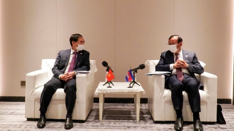 (VOVWORLD) - เมื่อเช้าวันที่ 7 มิถุนายน ณ เมืองฉงชิ่ง ประเทศจีน นาย บุ่ยแทงเซิน รัฐมนตรีว่าการกระทรวงการต่างประเทศเวียดนามได้พบปะกับนาย Prak Sokhonn รองนายกรัฐมนตรีและรัฐมนตรีว่าการกระทรวงการต่างประเทศและความร่วมมือระหว่างประเทศกัมพูชานอกรอบการประชุมรัฐมนตรีว่าการกระทรวงการต่างประเทศอาเซียน-จีนและการประชุมรัฐมนตรีความร่วมมือแม่โขง-ล้านช้างครั้งที่ 6