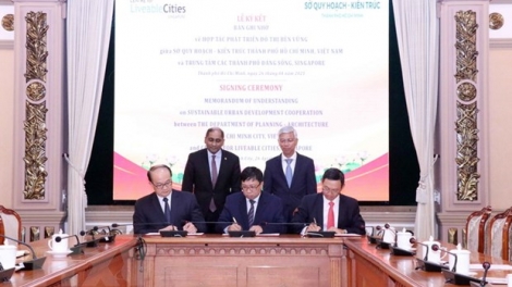 (VOVWORLD) - บ่ายวันที่ 26 เมษายน ณ นครโฮจิมินห์ สำนักงานวางผังและสถาปัตยกรรมนครโฮจิมินห์และศูนย์ตัวเมืองที่น่าอยู่ของสิงคโปร์ได้ลงนามในบันทึกช่วยจำเกี่ยวกับความร่วมมือในการส่งเสริมการวางผังเมืองอย่างยั่งยืน