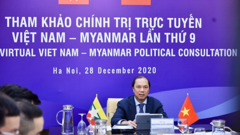 (VOVWORLD) - วันที่ 28 ธันวาคม นาย เหงวียนก๊วกหยุง รัฐมนตรีช่วยว่าการกระทรวงการต่างประเทศเวียดนามและรัฐมนตรีช่วยว่าการกระทรวงการต่างประเทศเมียนมาร์ Hau Do Suan ได้เป็นประธานการประชุมทาบทามความคิดเห็นทางการเมืองระดับรัฐมนตรีช่วยว่าการกระทรวงการต่างประเทศเวียดนาม-เมียนมาร์ครั้งที่9 ประจำปี 2020ผ่านวิดีโอคอนเฟอเรนซ์