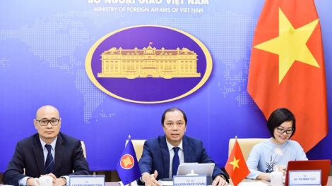 (VOVWORLD) - เมื่อวันที่ 24 พฤศจิกายน นาย เหงียนก๊วกหยุง รัฐมนตรีช่วยว่าการกระทรวงต่างประเทศและหัวหน้าคณะผู้แทนเจ้าหน้าที่อาวุโสของเวียดนามในการประชุมSOM อาเซียน เวียดนาม ได้เข้าร่วมการสนทนากับประธานอาเซียน 2020 ในกรอบฟอรั่มการสื่อสารอาเซียนหรือ AMFครั้งที่ 4