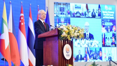 (VOVWORLD) -เช้าวันที่ 12 พฤศจิกายน ณ กรุงฮานอย การประชุมผู้นำอาเซียนครั้งที่ 37 ได้เปิดขึ้นอย่างเป็นทางการผ่านวิดีโอคอนเฟอเรนซ์ ซึ่งเป็นการประชุมครั้งสุดท้ายของปีประธานอาเซียน 2020