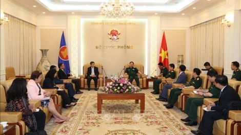พลเอกโงซวนหลิกรัฐมนตรีว่าการกระทรวงกลาโหมเวียดนามให้การต้อนรับคณะเลขาธิการอาเซียน