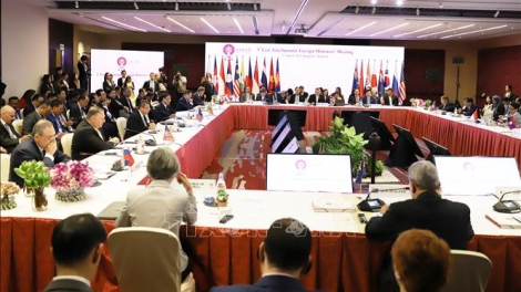 (VOVWORLD) - เมื่อเช้าวันที่ 2 สิงหาคม ณ กรุงเทพฯ ได้มีการเปิดการประชุมรัฐมนตรีว่าการกระทรวงการต่างประเทศเอเชียตะวันออก หรือ EAS ครั้งที่ 9 โดยมีรัฐมนตรีว่าการกระทรวงการต่างประเทศสมาชิกอาเซียนและ 8 ประเทศคู่สนทนา ได้แก่ออสเตรเลีย จีน อินเดีย ญี่ปุ่น สาธารณรัฐเกาหลี นิวซีแลนด์ รัสเซียและสหรัฐเข้าร่วม ซึ่งคณะผู้แทนเวียดนามนำโดยรองนายกรัฐมนตรีและรัฐมนตรีว่าการกระทรวงการต่างประเทศฝ่ามบิ่งมิงได้เข้าร่วมการประชุมดังกล่าว