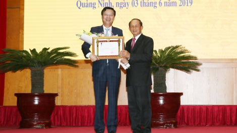 พิธีมอบเหรียญอิสริยาภรณ์ของประธานประเทศลาวให้แก่คณะและบุคคลต่างๆของจังหวัดกว๋างนิง