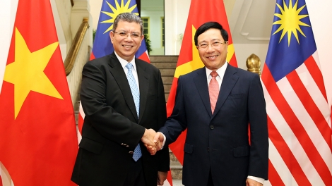 รองนายกรัฐมนตรีและรัฐมนตรีว่าการกระทรวงการต่างประเทศฝ่ามบิ่งมิงเจรจากับรัฐมนตรีว่าการกระทรวงการต่างประเทศมาเลเซีย