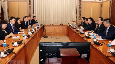 (VOVWORLD) - เมื่อบ่ายวันที่ 15 พฤษภาคม นาย เลแทงเลียม ประธานคณะกรรมการประชาชนนครโฮจิมินห์ได้ให้การต้อนรับนาย Chee Hong Tat ปลัดกระทรวงพาณิชย์และอุตสาหกรรมและปลัดกระทรวงการศึกษาสิงคโปร์พร้อมคณะตัวแทนสถานประกอบการสิงคโปร์ในโอกาสมาเยือนนครโฮจิมินห์