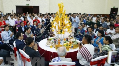 (VOVWORLD) - เมื่อค่ำวันที่ 11 เมษายน สถานทูตลาว ณ กรุงฮานอยได้จัดงานบุญปีใหม่ปี 2562 โดยมีตัวแทนผู้นำพรรคและรัฐเวียดนาม เจ้าหน้าที่พนักงานสถานทูตและนักศึกษาลาวที่กำลังศึกษาในประเทศเวียดนามเข้าร่วมเป็นจำนวนมาก