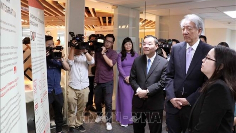 (VOVWORLD) - ในกรอบการเยือนเวียดนามอย่างเป็นทางการของนาย เตียวชีเฮียน รองนายกรัฐมนตรีและรัฐมนตรีดูแลการประสานปัญหาความมั่นคงแห่งชาติสิงคโปร์ เมื่อเช้าวันที่ 23 มีนาคม ณ กรุงฮานอย ได้มีการเปิดตัวศูนย์ความร่วมมือเวียดนาม-สิงคโปร์ภายใต้การเป็นสักขีพยานของนาย เตียวชีเฮียน รองนายกรัฐมนตรีและรัฐมนตรีดูแลการประสานปัญหาความมั่นคงแห่งชาติสิงคโปร์ นาย จูหงอกแอง รัฐมนตรีว่าการกระทรวงวิทยาศาสตร์และเทคโนโลยีเวียดนาม พร้อมกับตัวแทนกระทรวงการต่างประเทศ กระทรวงและหน่วยงานต่างๆของเวียดนามและองค์การระหว่างประเทศ